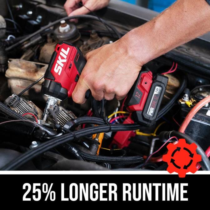 a chave de impacto skil pwrcore 12 sem escova 12v de 3/8 de polegada oferece grande potência em um pacote compacto e leve com até 125 libras-pé de torque de fixação, 200 libras-pé de arrombamento de porcas torque e até 3.400 ipm para acionar porcas e parafusos resistentes. 1 polegada mais curta que sua geração anterior, é uma chave de impacto sem fio ideal para trabalhar acima da cabeça em espaços de difícil acesso. a ferramenta elétrica possui uma bigorna quadrada de 3/8 de polegada com um anel de fricção para facilitar a troca de soquete, e seu motor digital sem escova combinado com seleção de três velocidades fornece potência de alto desempenho e controle preciso. sua luz halo fornece 5x mais luz do que os LEDs comuns, ao mesmo tempo que reduz as sombras e ilumina seu espaço de trabalho por até 10 minutos.